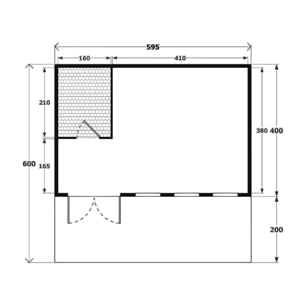 | Veranda : | 595 x 250 cm (optional) |